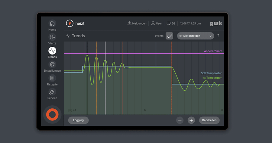 logotherm is a user-friendly and highly flexible human-machine interface for the industrial cooling and temperature control systems of gwk, (Gesellschaft Wärme Kältetechnik), now part of technotrans SE, suitable for a wide range of applications and monitor sizes. Clear user guidance optimized the efficiency and energy consumption of the systems. The interface was first implemented and tested exemplarily for the single-circuit tempering unit, to be subsequently adapted to the rest of the product range. Additionally, a wizard specifically designed for commissioning was developed, guiding the user step-by-step through the configuration process on the PC.