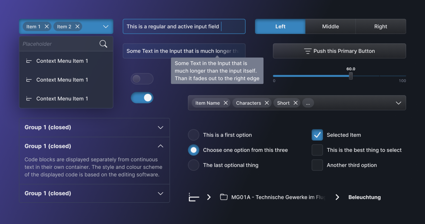 To counteract the high complexity of projects implemented with FIS, a robust and comprehensive foundation of simple navigation and interaction patterns and well-designed UI components was created. This design system formed the basis for the numerous individual modules that comprise the framework. The resulting flexibility of the structure, combined with the clearly defined behaviours of the individual elements, enables the easy adaptation of a wide variety of system structures and functionalities within FIS. This ensures high usability and a consistent user experience.