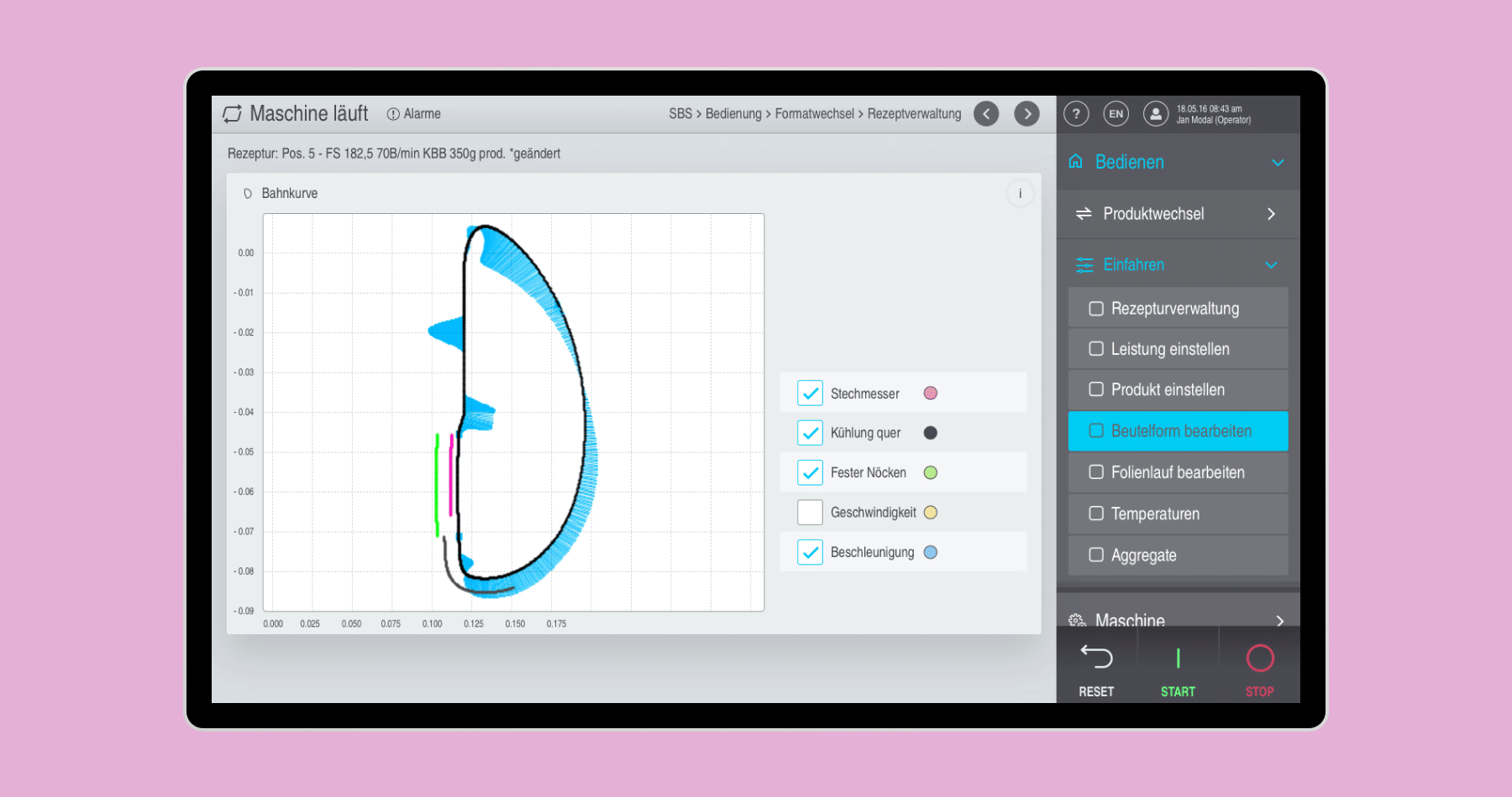 Rovema's new HMI is a touch-optimized user interface for packaging machines and lines that covers the entire packaging process: from dosing to form, fill, and seal machines, to complete packaging systems, including end-of-line packaging, for a variety of different products and applications in the food and non-food sectors. The user interface features a fully customizable HMI that adapts to various screen sizes and input methods.