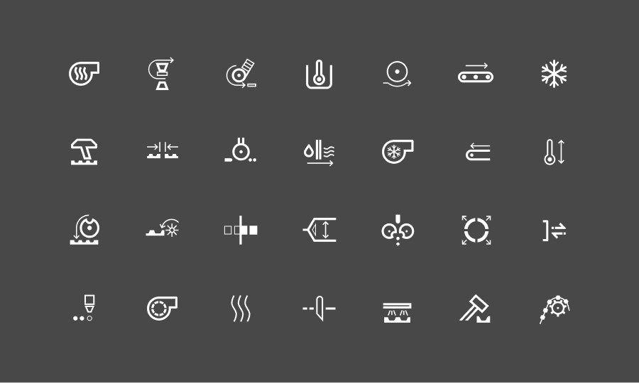Highlight der neuen Software-Generation ist die umfangreiche und modular aufgebaute Illustrationsbibliothek. Von kleinen Zusatzgeräten über Einzelmaschinen bis hin zu (komplexen) kombinierten Linien – hier sind der Konfiguration keine Grenzen gesetzt. Der einfache und klare Illustrationsstil lässt dabei genügend Raum für zusätzliche Integrationen wie interaktive Steuerungselemente oder die grafische Hervorhebung von Alarmen. Ein individuelles Icon zu jeder Maschinenkomponente rundet das grafische System ab.