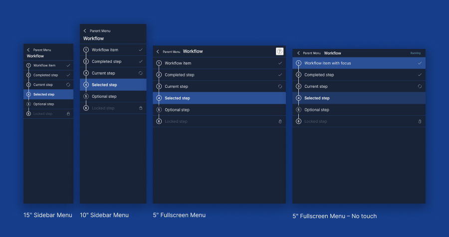 Die Beibehaltung derselben funktionalen Prinzipien über alle Anwendungen hinweg gewährleistet Konsistenz und Benutzerfreundlichkeit. Das Design passt sich an eine Vielzahl von Gerätetypen und Eingabemethoden an – von großen Touchscreens und reinen Tastenbedienungen bis hin zu Desktop-Systemen, die mit Maus und Tastatur gesteuert werden.