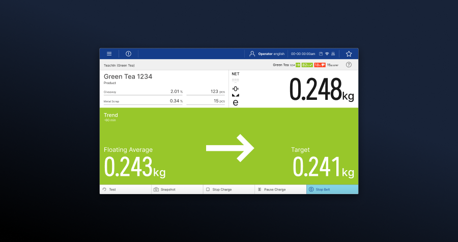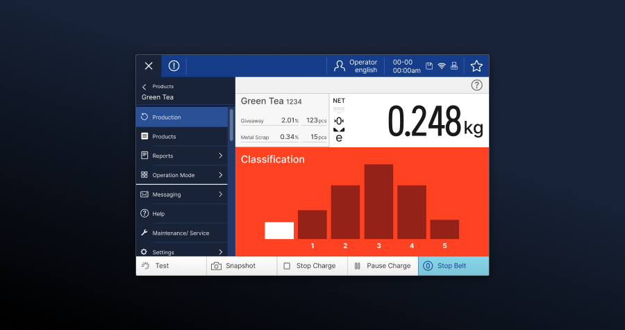 Corporate-UI für industrielles Wiegen und Produktinspektion Blue HMI / Minebea Intec