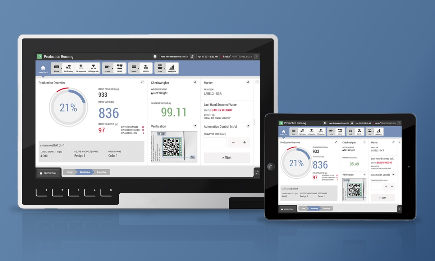 Für die Maschinen- und Systementwickler Hapa AG und Laetus GmbH (ehemals Coesia) entstand initial ein gemeinsames Bedienkonzept. Um die sehr unterschiedlichen Anforderungen beider Firmen in einem HMI gleichermaßen abzudecken, wurde ein generischer Ansatz verfolgt, der sich über die Zeit zu einem global genutzten Corporate UI entwickelt hat.