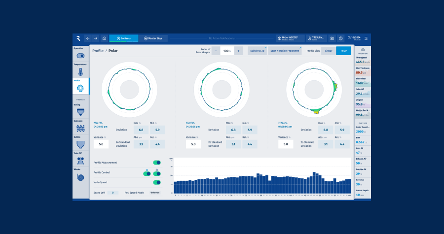 Die Reifenhäuser Gruppe vereint drei traditionsreiche Bereiche, Blasfolie, Flachfolie und Vlies, mit unterschiedlichen Prozessen und Bedienkonzepten. Am Beispiel der Blasfolie wurde ein einheitliches, skalierbares UI-System zu entwickeln, das den heterogenen und komplexen Anforderungen dieser hochautomatisierten, mehrstöckigen Maschinen gerecht wird. Das System ist skalierbar aufgebaut und kann nun auf weitere Extrusionsbereiche übertragen werden, mit konsistenter Nutzerführung und starker Wiedererkennbarkeit.