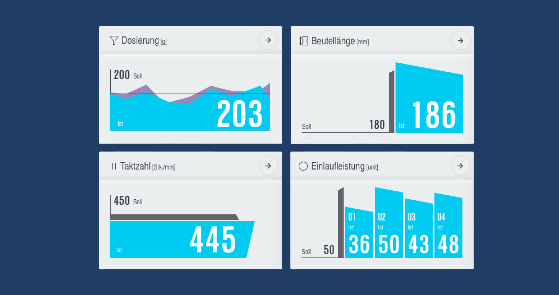 Der modulare Aufbau und das einheitliche Erscheinungsbild funktionieren für alle Maschinentypen. Features verfügen zusätzlich über Multi-Touch und eignen sich daher zur Überwachung einzelner Maschinen und komplexer Linien. Damit die Aufgaben noch reibungsloser ablaufen, sind die alltäglichen Aufgaben von der Einrichtungsfunktion getrennt. Die intuitive Bedienung durch aktive Benutzerführung und die unterstützte Bedienung durch Workflows und Schritt-für-Schritt-Anleitungen unterstützen den Benutzer bei der abstrakten Navigation.