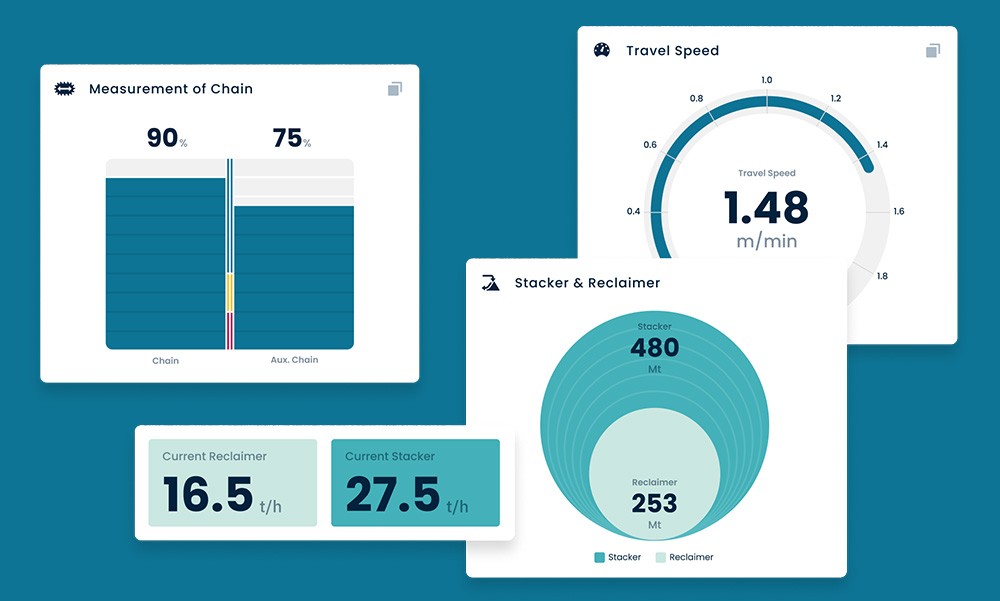 Die entwickelte Software kommt bei Schüttgutlagerplätzen und Mischbetten aller Branchen zum Einsatz. Hierzu zählen beispielsweise Zement, Eisen-, Stahl- und Aluminiumindustrie, Kraftwerksindustrie, Mining & Minerals, alternative Brennstoffe, sowie Häfen und Terminals. Die Herausforderung bestand im ersten Schritt darin, ein Bewusstsein für die Wichtigkeit, Relevanz und Aussagekraft der Daten zu schaffen und im Anschluss gemeinsam verständliche Visualisierungen zu erarbeiten. Die entwickelten, schnell erfassbaren Infografiken z.B. bezüglich der Abnutzung einzelner Maschinen, tragen zu einer vorausschauenden Wartung der Anlagen und damit einer immensen Verbesserung des Gesamtbetriebs bei.